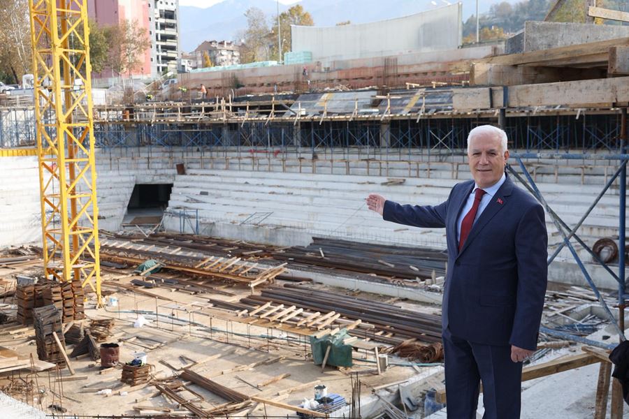 Bursa Büyükşehir Belediyesi tarafından tekrar ayağa kaldırılacak olan kentin simge yapılarından Atatürk Spor Salonu’nda inşaat tüm hızıyla devam ediyor. Seyirci kapasitesi 5016’ya çıkarılan salonun Türkiye’de örnek bir yapı olacağını söyleyen Başkan Mustafa Bozbey, “Bu salonda, Avrupa’nın ve dünyanın önemli takımlarını izleme fırsatı bulacağız” dedi.