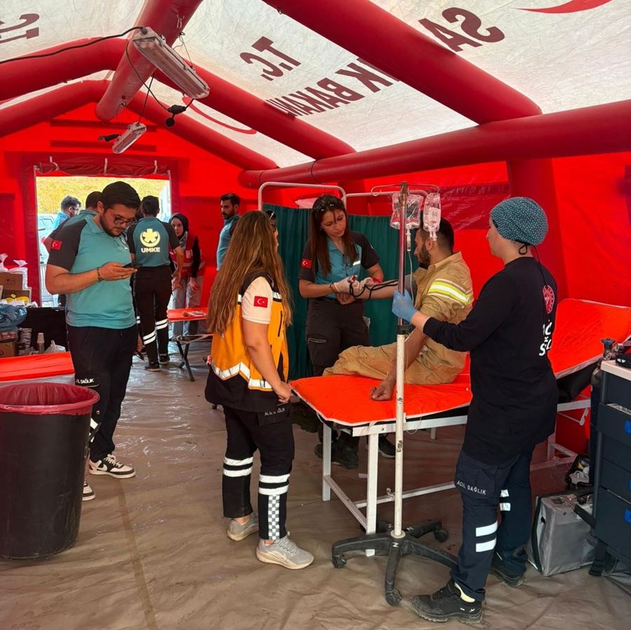 Bursa’da geçtiğimiz günlerde birçok noktada çıkan orman yangınlarında, yangın söndürme ekiplerinin mücadelesi kadar sağlık ekiplerinin özverili çalışmaları da damga vurdu. Yangın süresince 3 noktada kurulan sahra hastanesinde 73 UMKE (Ulusal Medikal Kurtarma Ekibi) personeli görev yaparken, 350’ye yakın vatandaşa tıbbi müdahalede bulunuldu.