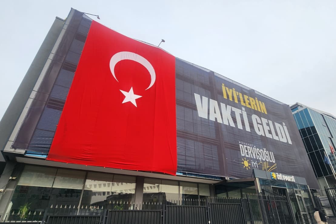 Öte yandan, Nusaybin’de yaşanan bayrak saldırısına tepki olarak İYİ Parti Genel Merkezi’ne Türk bayrağı asıldı. Genel merkez önünde bulunan led ekranlı araçlarda da Türk bayrağı dalgalandırıldı.