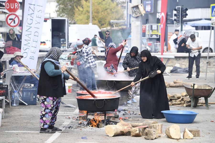 Osmangazi Belediyesi’nin hayata geçirdiği “Malzemeler Bizden Salça Yapması Sizden” projesiyle yüzlerce vatandaş imece usulü kışlık salçalarını odun ateşinde kaynatarak hazırladı.