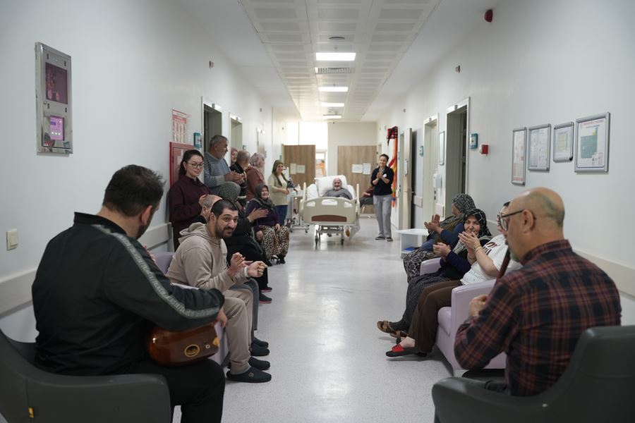 Yenişehir Belediyesi Türk Halk Müziği Korosu Şefi Kemal Kamalı, bağlama eğitmeni Selçuk Oruç ve ney eğitmeni Veli Kenan Şimşek’in sahne aldığı programda, Türk müziğinin seçkin eserleri seslendirildi. Neyin huzur veren tınısı ve bağlamanın içten melodileriyle buluşan hastalar, tedavi süreçlerine kısa ama anlamlı bir müzik molası verdi.